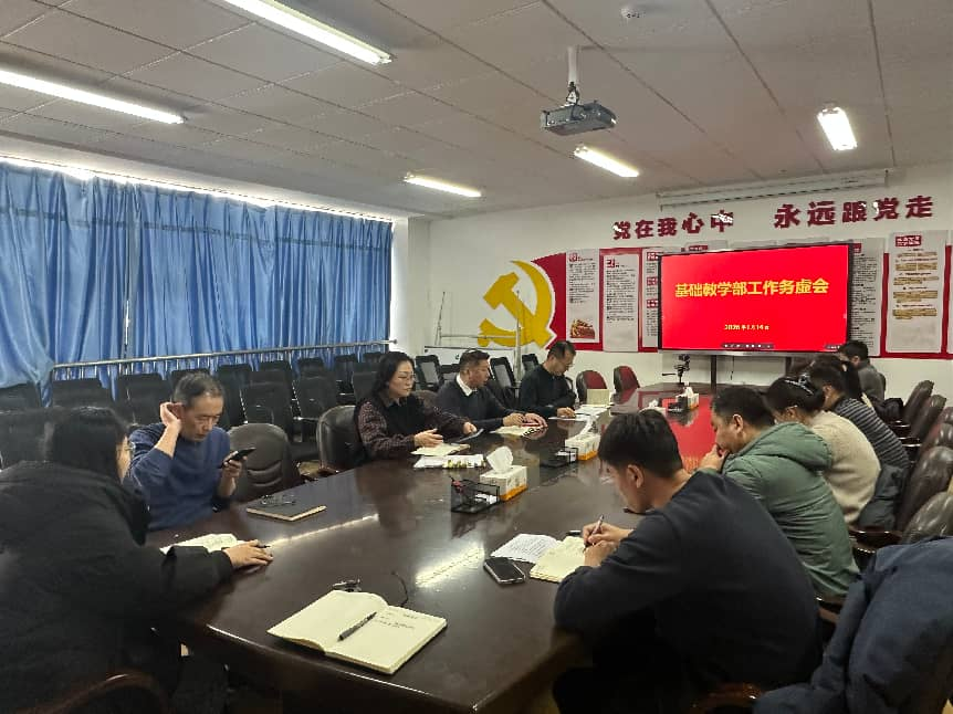 1月14日下午,基础教学部在2号教学楼A405会议室召开2026年工作务虚会。党委书记闫淼、主任马强、副主任江娜、教学与科研办公室主任马文姬、科研秘书秦红兵以及各教研室主任、副主任参加会议。会议由闫淼主持。会...